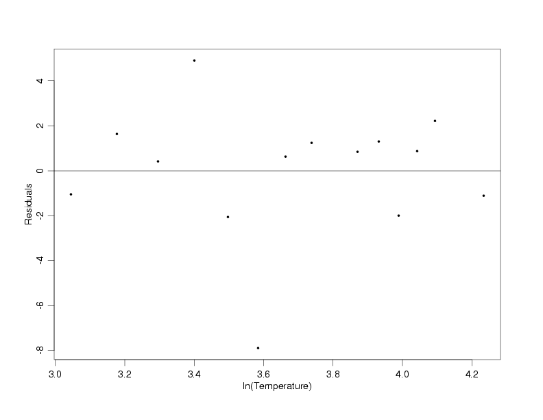 Residuals from Weight Estimation Model vs ln(Temperature)